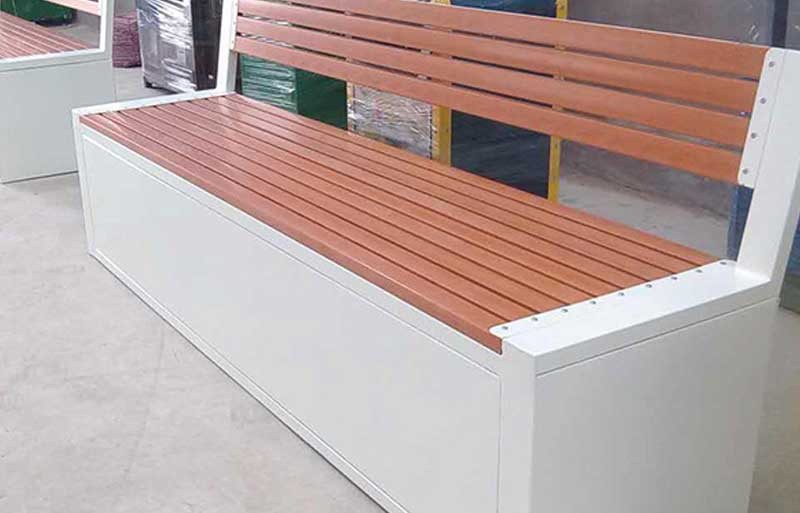 2.環(huán)保木椅條,A.用PE PP PS 加木粉進行攪拌。B.將粉末放入木塑擠出設(shè)備內(nèi),加溫 、加熱 、成型,然后加工成椅條的尺寸。