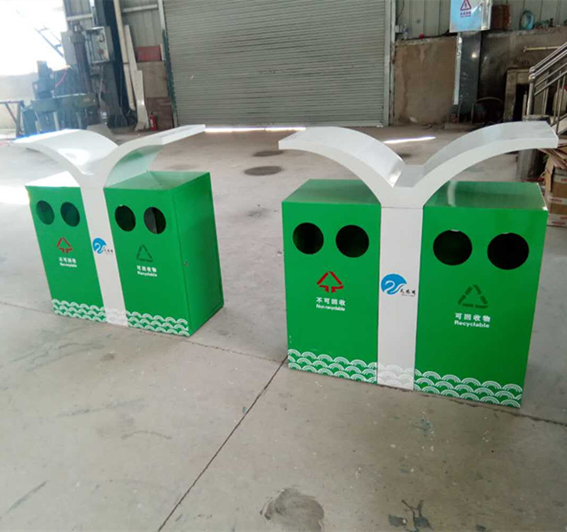 蝴蝶型分類環(huán)保垃圾桶果皮箱采用SMC復合材料,3500噸壓機模壓成型,內(nèi)外光潔度一致。