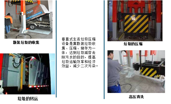 該產(chǎn)品適用于城鎮(zhèn)生活垃圾的儲(chǔ)存、壓縮和轉(zhuǎn)運(yùn),通??稍O(shè)置在靠近街道及居民生活小區(qū)內(nèi),是當(dāng)今生活垃圾處理的理想設(shè)備。