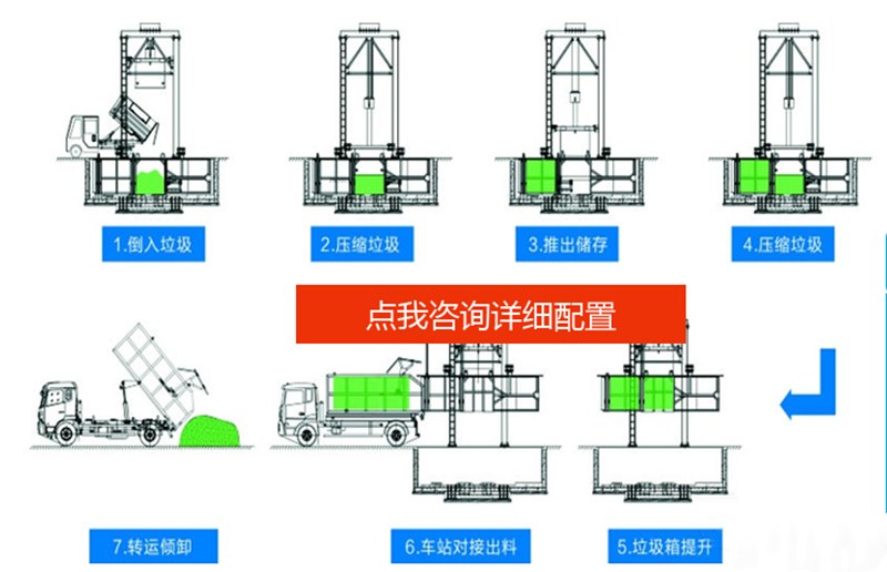 ◇垃圾的儲(chǔ)存、壓縮及寄存全部在地面以下,地面上沒(méi)有垃圾散落,環(huán)保性好。